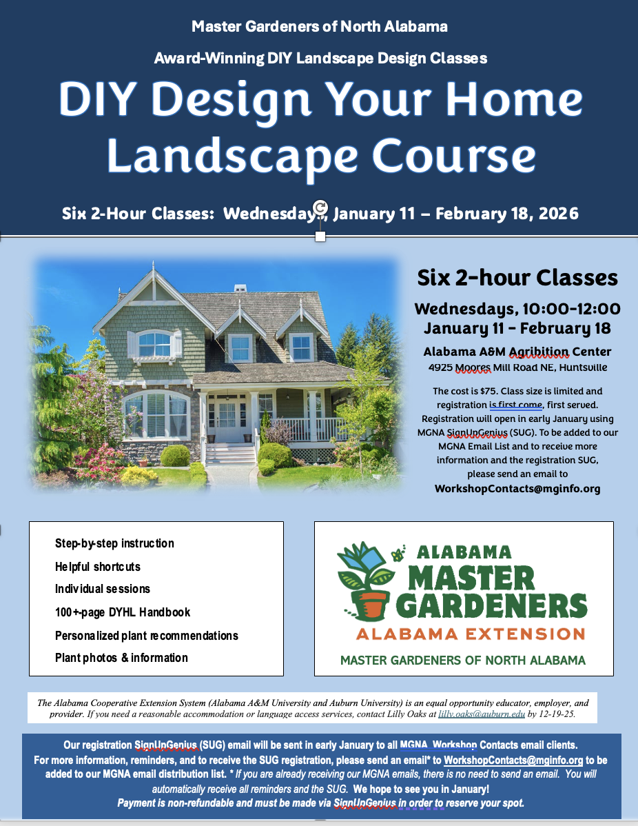 Since our inaugural class in 1992, more than 300 people have received Master Gardener training in Limestone County and over 6,000 in Alabama. Many remain active supporting our community projects and continuing to learn more about gardening in North Alabama.