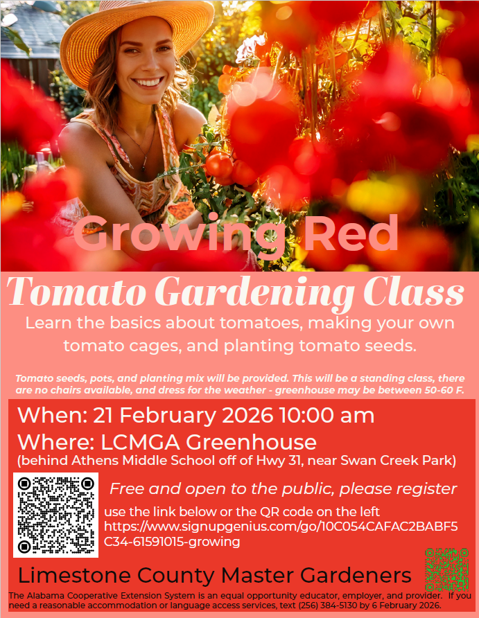 This April 2024, Alabama Extension announced that Limestone County earned 3rd place statewide for the 2,631 pounds of produce grown and donated to local food distribution centers. We have 67 MGs who volunteer and support our charity vegetable gardens throughout Limestone County.